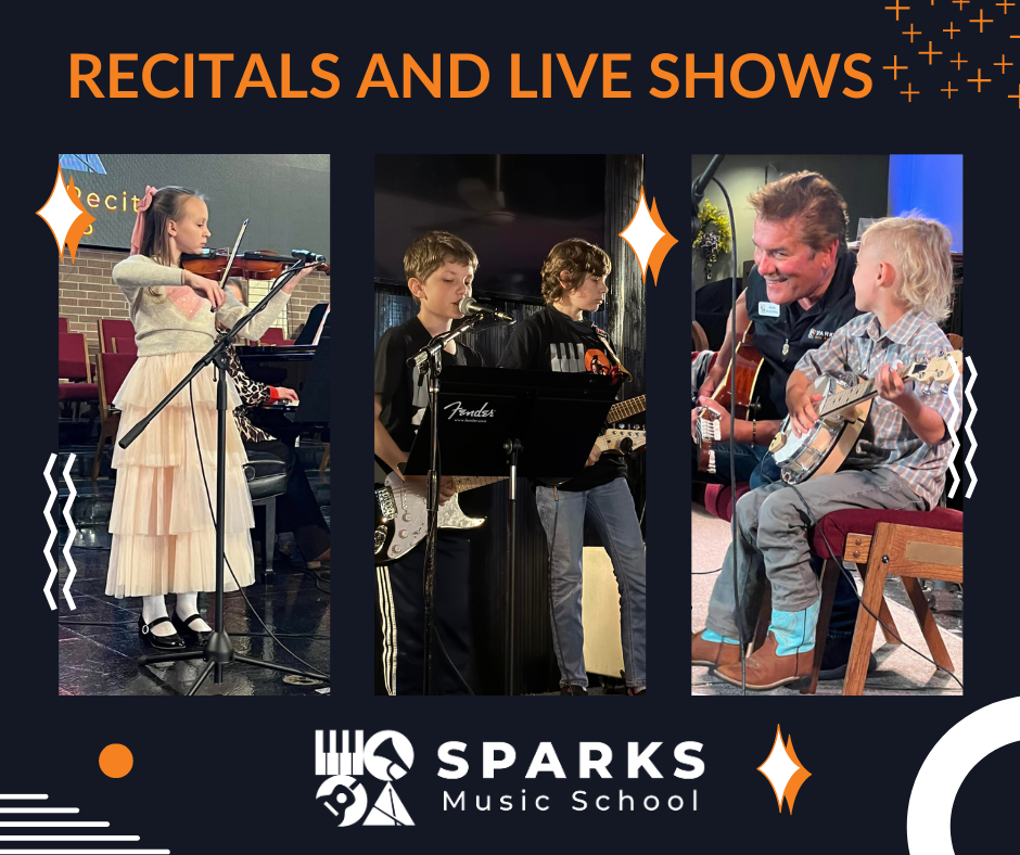 We believe that performing is a rewarding and integral part of becoming an accomplished musician. We offer several performance opportunities throughout the year including two traditional recitals and Sparks LIVE! Events at local establishments in the community. Performance not only gives students a concrete goal to work toward but also helps inspire self confidence and a sense of accomplishment.